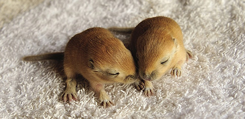 Cada vez que una hembra pare puede tener camadas de entre 2 y 10 crías. Nacen sin pelo, ciegas y sordas.